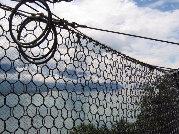 边坡防护网采用的原材料都是高柔性的,高柔性防护网可以更好的发挥整体的防护效果,当落石滚落下来后,局部受力整体防护。