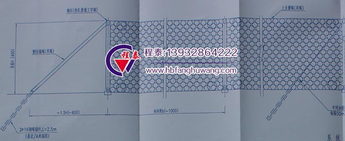 RXI-050型被动环形网由钢丝绳网或环形网(需拦截小块落石时附加一层铁丝格栅),固定系统(锚杆、拦锚绳、基座和支撑绳)、减压环和钢柱四个主要部分构成。钢柱和钢丝绳网连接组合构成一个整体,对所防护的区域形成面防护,从而阻止崩塌岩石土体的下坠,起到边坡防护作用。